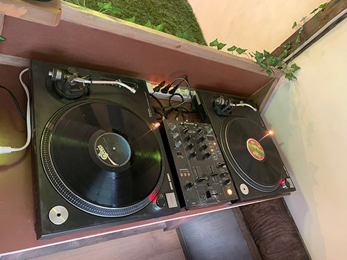 アナログレコードを高音質のBOSEスピーカーで 音を楽しめるターンテーブルも完備