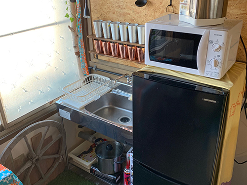 電子レンジや冷蔵庫も完備しておりますので、総菜やお酒をたくさん買い込んでも安心 好みのスタイルで手間なく気軽に楽しんで頂ける空間です!