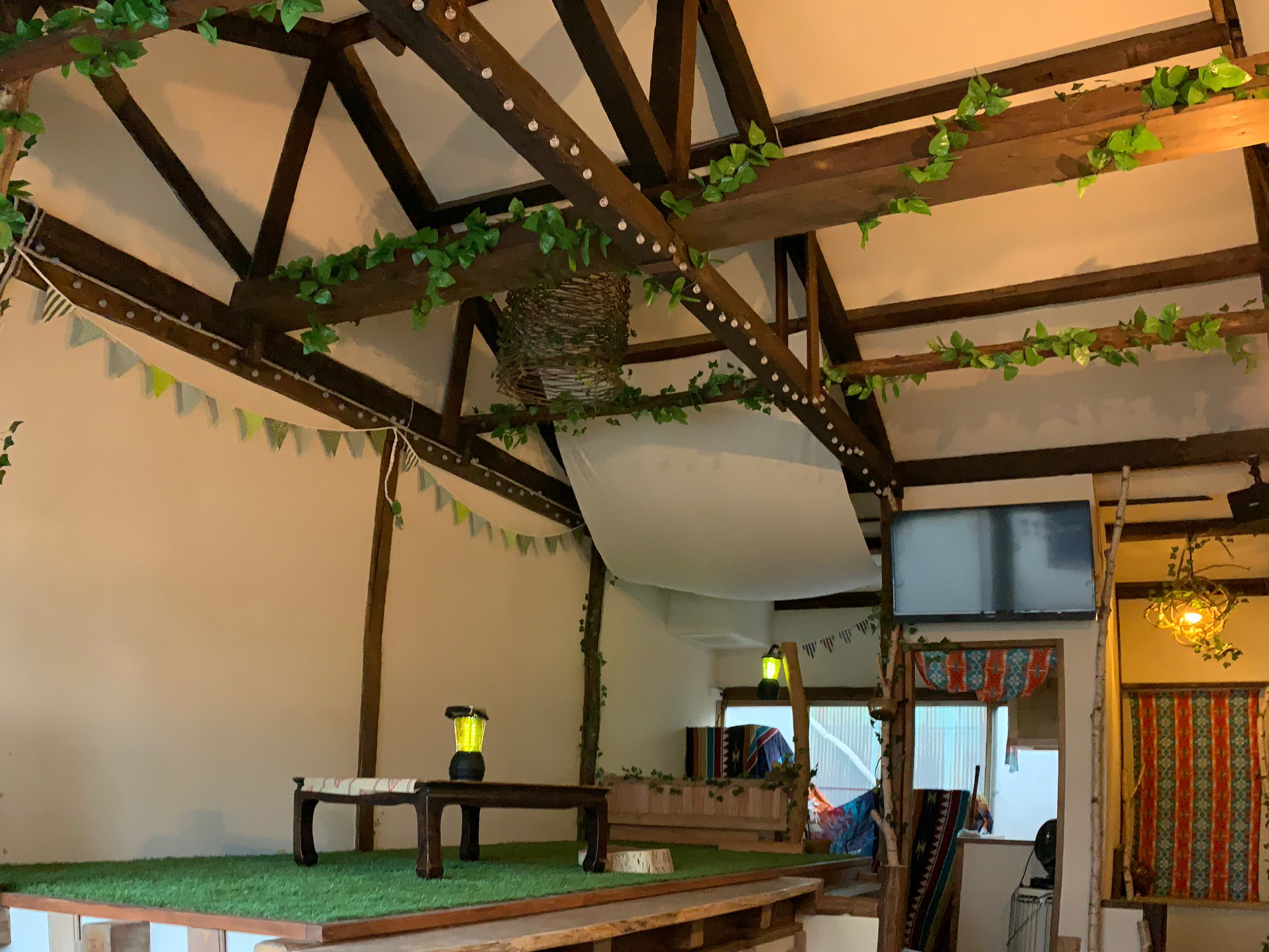 高さ4m、24平米の広い空間にて お子様も喜ぶ芝生でゴロゴロ…